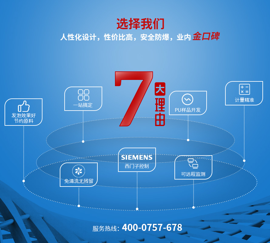 我們專門聘請一批出色的軟件工程師和機械設計師,吸納意大利康隆等國外高壓發泡機的優點,專注自動化研發改造20年,開創了適合現代環保生產工藝的聚氨酯發泡機、環戊烷高壓發泡機、聚氨酯原料、各類智能發泡生產線(龍門架/地軌線/圓盤線)、自動發泡模具模架、機器人機械臂等一體化的聚氨酯發泡成套定制體系,并且免費提供聚氨酯自動化整體方案及優良的售前售后技術支持。