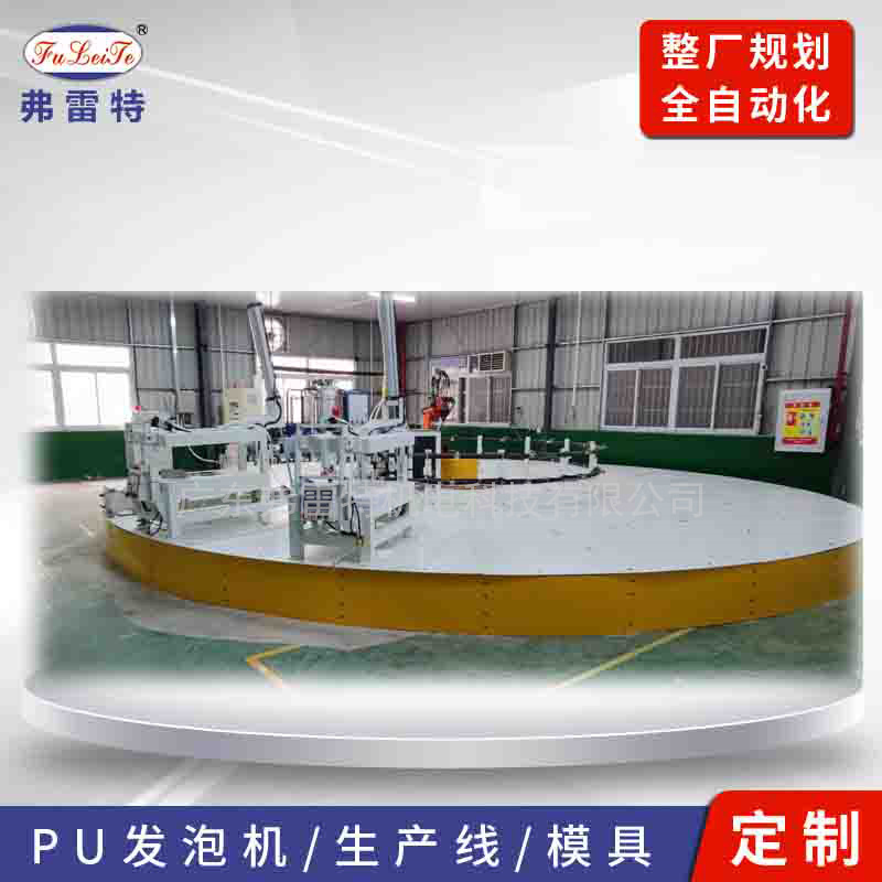 弗雷特自主研發大型自動化轉盤生產線能實現連續型、多工位、全自動化發泡生產,主要應用于汽車座椅坐墊聚氨酯發泡、摩托車坐墊PU自結皮發泡、健身器材發泡、腳墊發泡等。