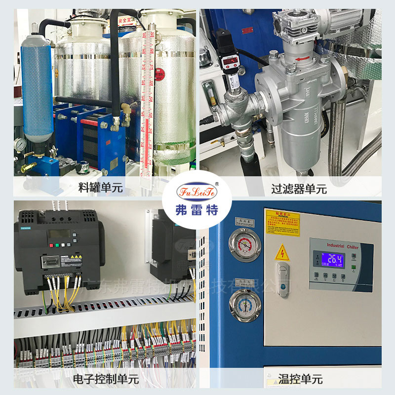 2、雙恒溫控制:采用雙冷熱一體機,配合冷熱交換器,確保原料溫度恒定,誤差<±2℃ ,提高制品發(fā)泡質(zhì)量。