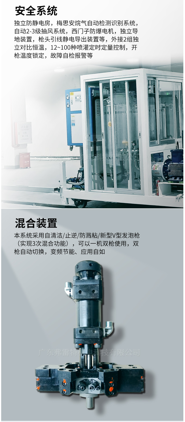 本系統(tǒng)采用自清潔、止逆、防濺粘、新型V型發(fā)泡槍,實(shí)現(xiàn)3次混合功能,結(jié)構(gòu)美觀、操作方便。