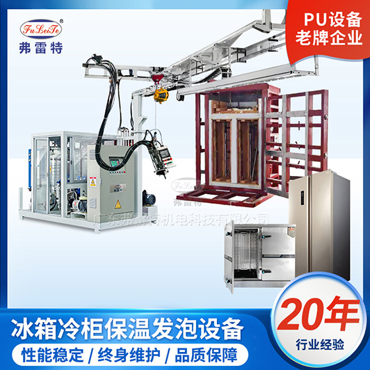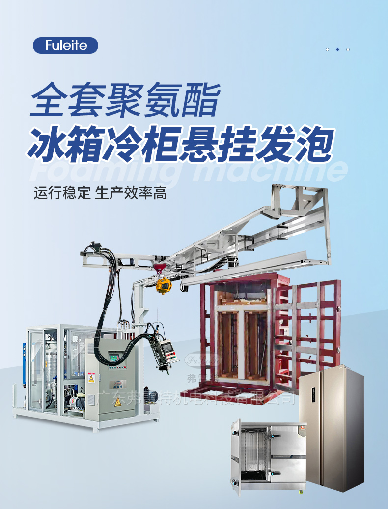3、懸掛線比傳統擺管式更實用:打料范圍廣、可以選擇不同大小模具操作、定位工位可操控,可以滿足冰箱、消毒柜、保溫箱等大型發泡產品批量生產。