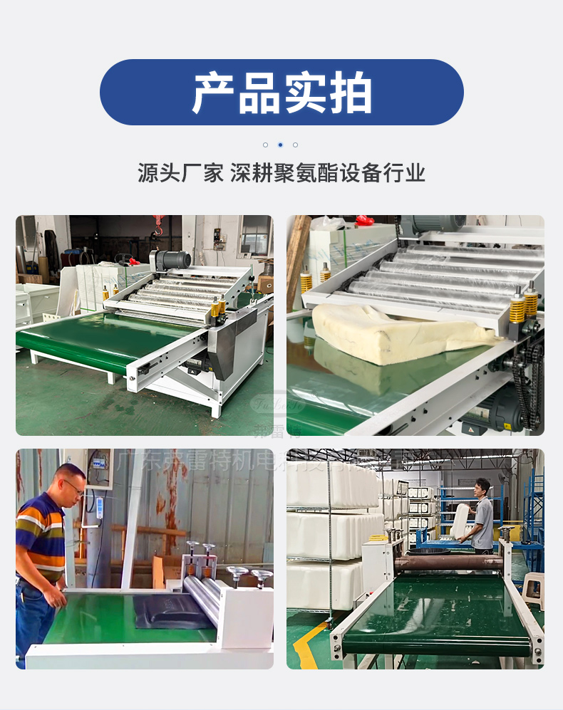 通過上下相互嚙合的壓輥組進行擠壓,將制品中的氣泡擠破,且氣泡破孔小,撤壓后材質(zhì)的硬度幾乎沒有變化,保證了制品的高緩沖、慢回彈的特性。