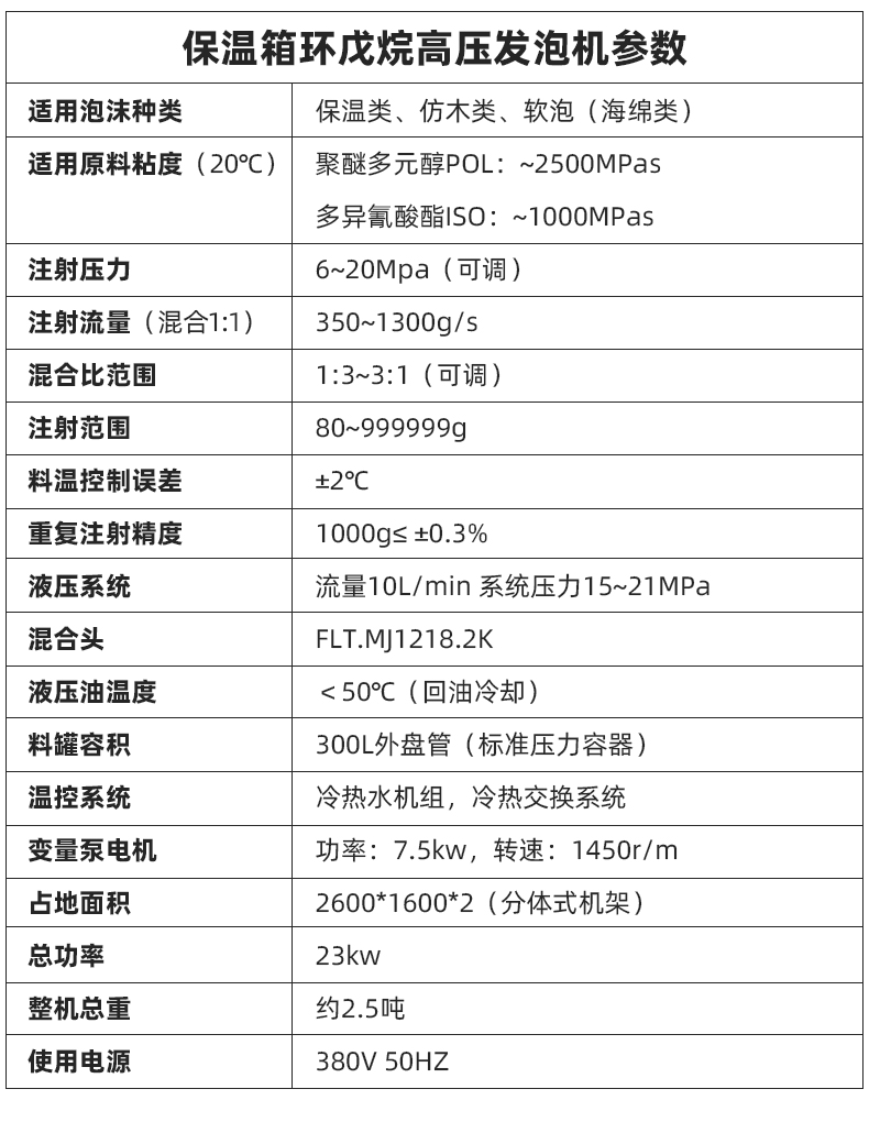 保溫箱環戊烷發泡機設備 在保溫箱箱體內部澆注聚氨酯發泡原料,一臺保溫聚氨酯高壓發泡機,支持批量澆注生產不同規格不同尺寸的保溫箱,用弗雷特高壓發泡技術,生產出來的保溫箱牢牢鎖住熱量,保溫效果非常好! 弗雷特環戊烷發泡機具有西門子PLC+雙變頻多功能安全裝置,38個智能自檢保護點,獨立防靜電房,烷氣濃度等級自動識別系統,自動2-3級抽風系統,西門子防爆電機,獨立導地裝置,槍頭引線靜電導出裝置等。