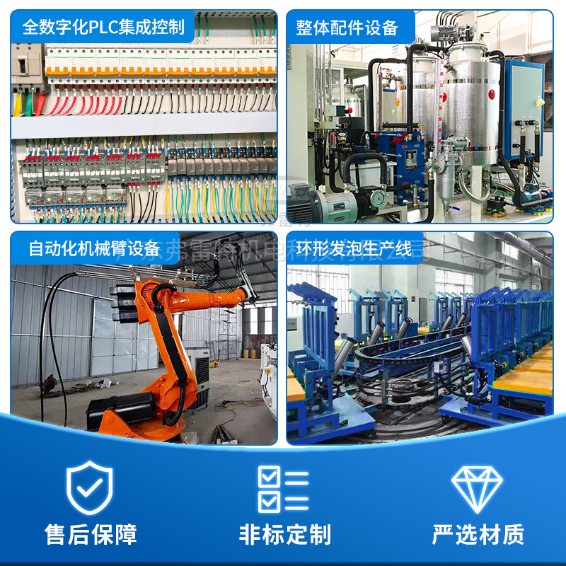 環(huán)形生產(chǎn)線主要適合慢回彈、高回彈海綿制品的發(fā)泡生產(chǎn),是和精密發(fā)泡機(jī)配套使用的,能提高生產(chǎn)效率,減少勞動(dòng)強(qiáng)度,提高產(chǎn)品質(zhì)量。環(huán)形生產(chǎn)線、軟泡發(fā)泡機(jī)是生產(chǎn)慢回彈,高回彈發(fā)泡制品必不可少的設(shè)備。流水線上配套有模具溫度控制系統(tǒng),電源和氣源系統(tǒng)配置等,流水線傳動(dòng)采用鏈條傳動(dòng)裝置,這樣大大減少轉(zhuǎn)動(dòng)電機(jī)的功率,達(dá)到節(jié)能省電的效果,旋轉(zhuǎn)速度無極可調(diào),性能穩(wěn)定,自動(dòng)化程度高,擁有極高的性價(jià)比。