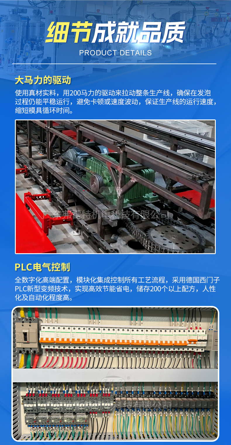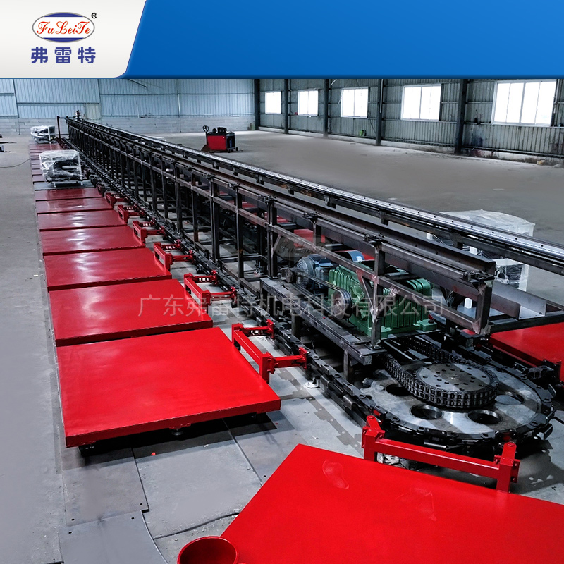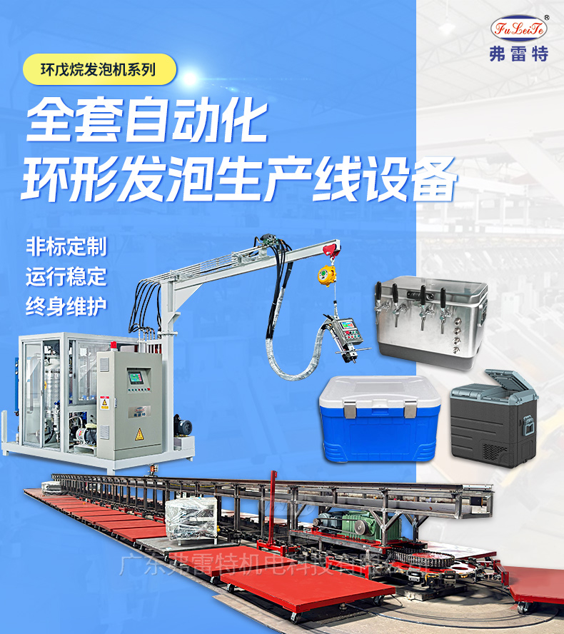 這是一條長(zhǎng)33米帶有40個(gè)工位的車載冰箱大型環(huán)形發(fā)泡生產(chǎn)線。這條生產(chǎn)線的優(yōu)點(diǎn)是占地面積小,每個(gè)工位可負(fù)載1.5-1.8噸的重量。常應(yīng)用于車載冰箱、保溫箱、熱水器、汽車內(nèi)飾等領(lǐng)域。做到高產(chǎn)能、負(fù)載量高。廣東弗雷特是一家國(guó)家級(jí)高新技術(shù)企業(yè),科技中小型企業(yè),創(chuàng)新型企業(yè)和專精特新企業(yè)。