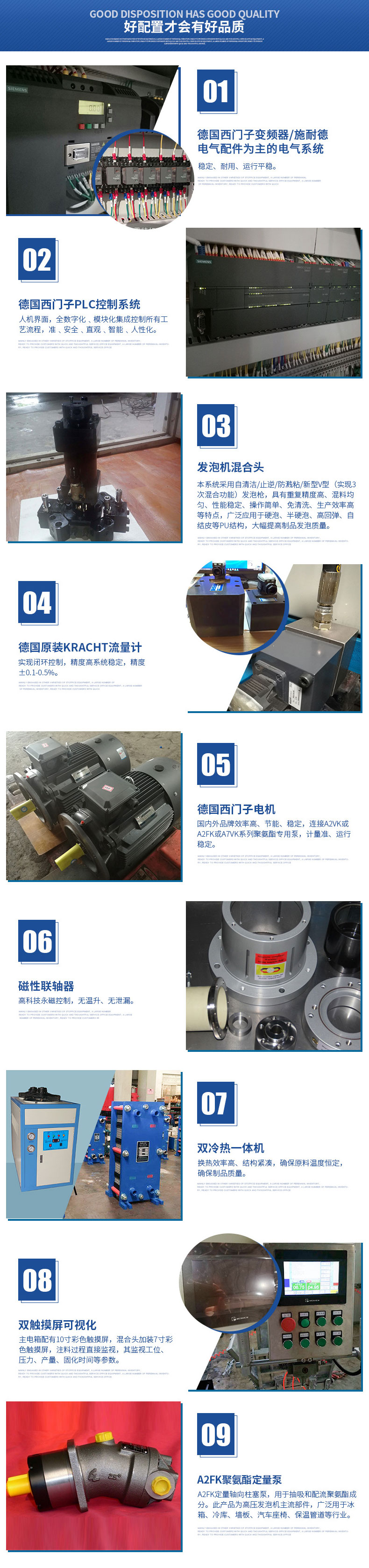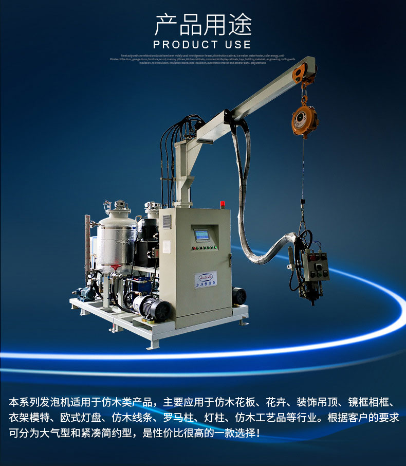 混合裝置:本系統采用自清潔/止逆/防濺粘/新型V型(實現3次混合功能)發泡槍,結構美觀、操作方便。配合西門子聚氨酯專用泵,注射準,混合效果很好。