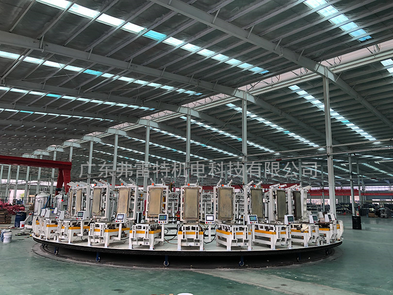 弗雷特自主研發大型自動化轉盤生產線能實現連續型、多工位、全自動化發泡生產,主要應用于汽車座椅坐墊聚氨酯發泡、摩托車坐墊PU自結皮發泡、健身器材發泡、腳墊發泡等。