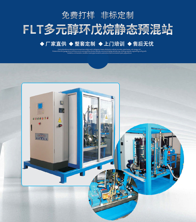 聚醚/環戊烷連續式靜態預混站主要用于環戊烷發泡料的連續預混,廣泛使用于冰箱、冷柜、熱水器、保溫建材、汽車內飾件等發泡原料的預混系統。