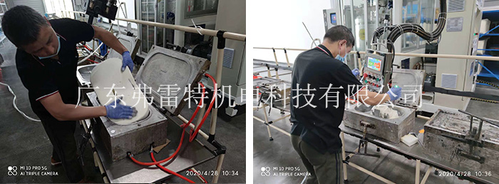 ⑤ 取模:操作人員取出模具內(nèi)產(chǎn)品,檢查產(chǎn)品表面缺陷,并及時(shí)告知上工位產(chǎn)品缺陷情況,將產(chǎn)品放于破泡機(jī)上開(kāi)孔作業(yè);