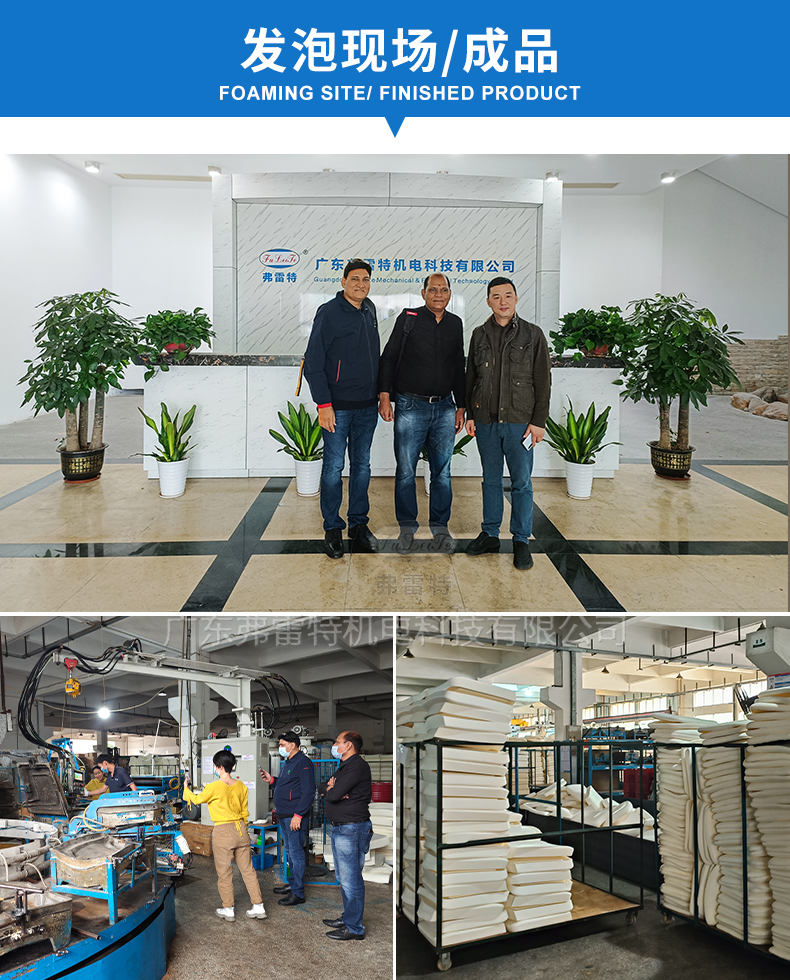 弗雷特可為客戶提供專用的高壓發泡機、發泡模具及生產線、機械臂等。公司軟泡發泡機設備在軟泡自結皮領域中也得到應用廣泛,例如家居沙發、地毯地墊、玩具工藝品、制鞋制革、枕頭、床墊等。