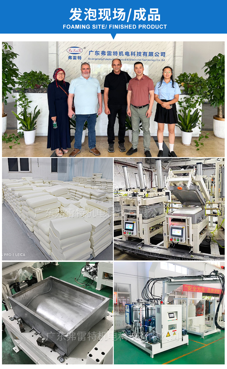 弗雷特可為客戶提供專用的高壓發泡機、發泡模縣及生產線、機械臂等。公司軟泡發泡機設備在軟泡自結皮領域中也得到應用廣泛,例如家居沙發、地毯地墊、玩具工藝品、制鞋制革、枕頭、床墊等。